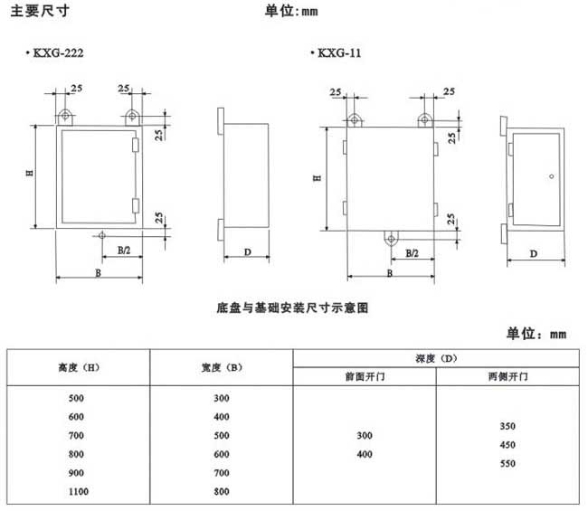 型號名稱KXG-222前面開門,小儀表箱KXG-11前側開門,小儀表箱