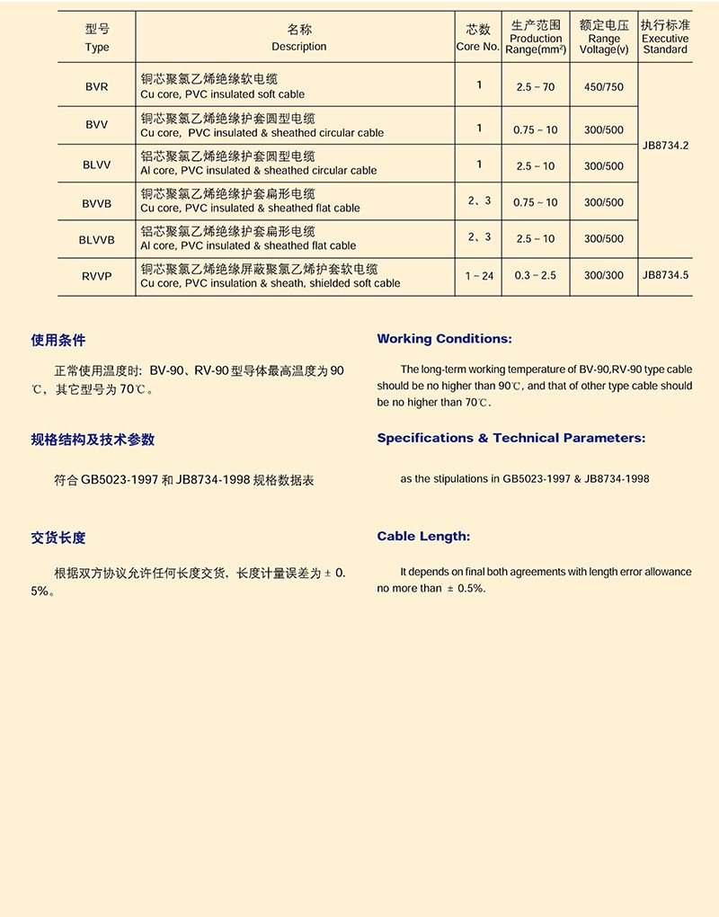 聚氯乙烯絕緣和控制電纜