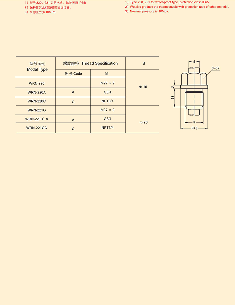 固定螺紋錐式熱電偶