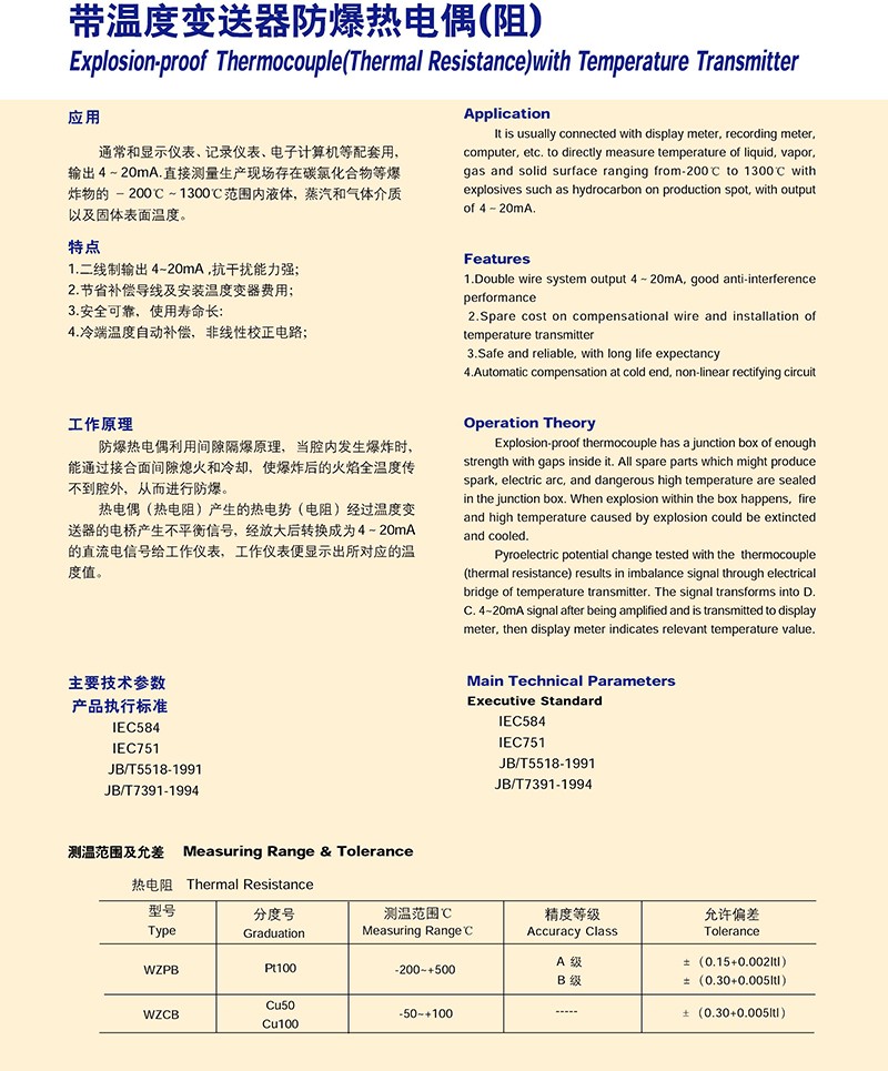 公司主營產品:熱電阻WZP,熱電偶WRN,雙金屬溫度計WSS,磁翻板液位計UHZ-50/C