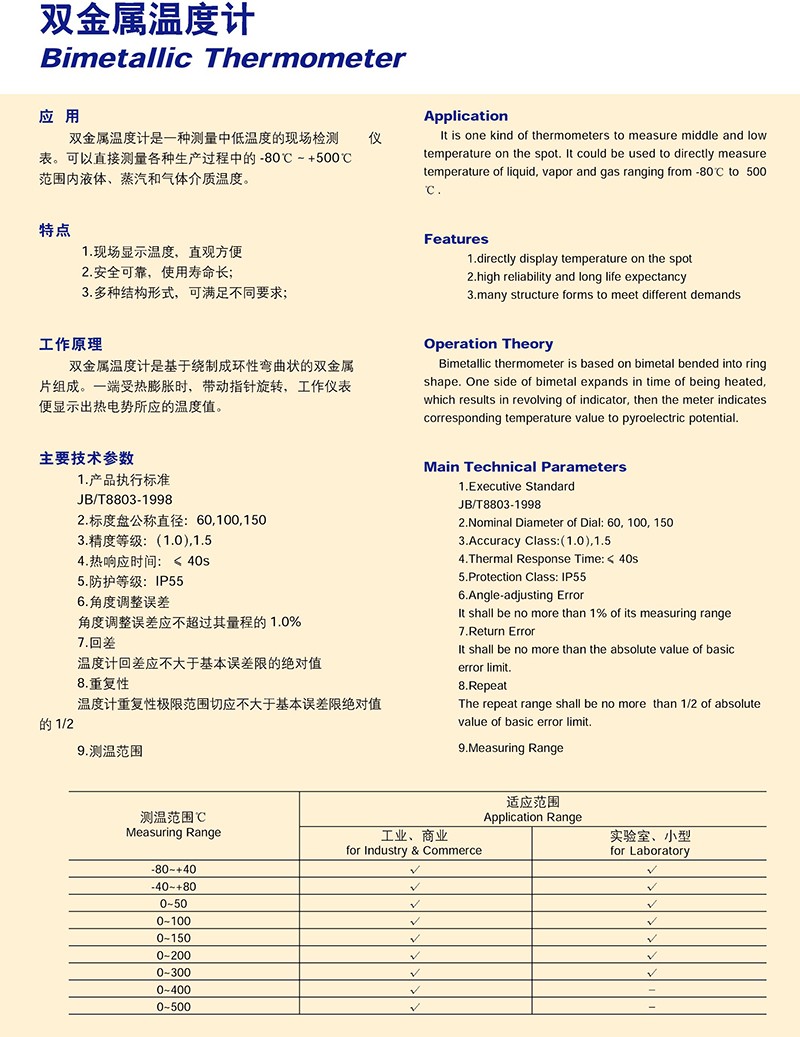 一體化雙金屬溫度計