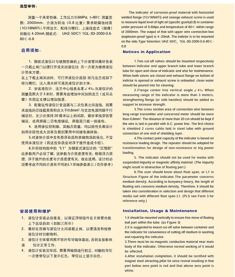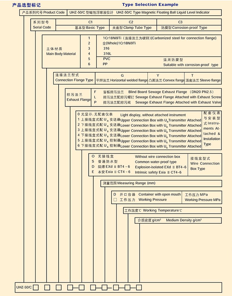 UHZ-50/C型系列側裝式磁性浮球液位計