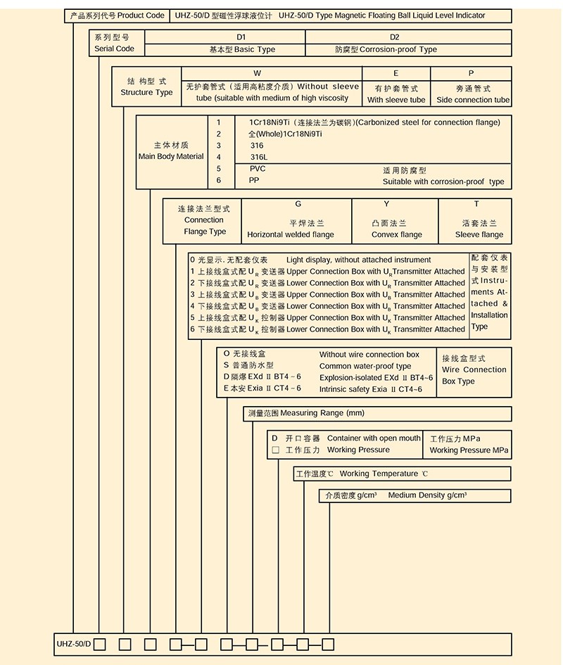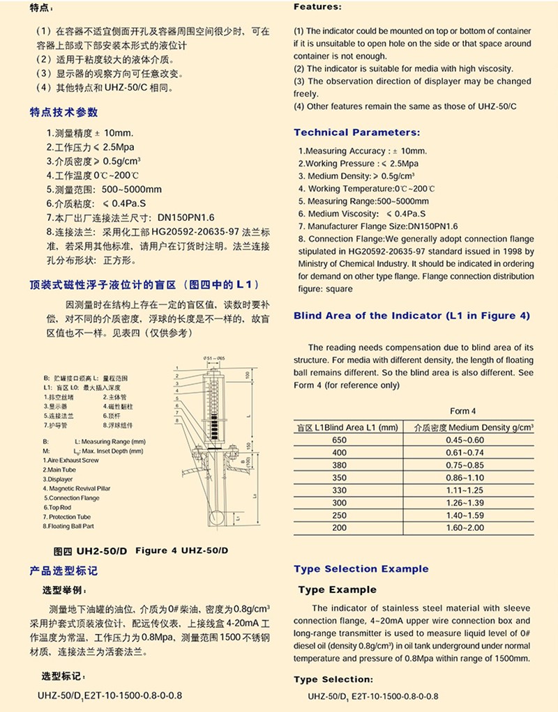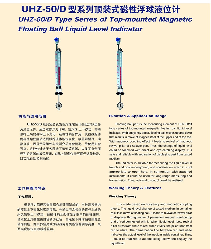 UHZ-50/D型系列頂裝式磁性浮球液位計