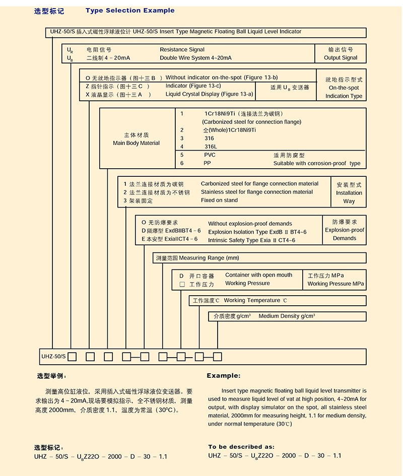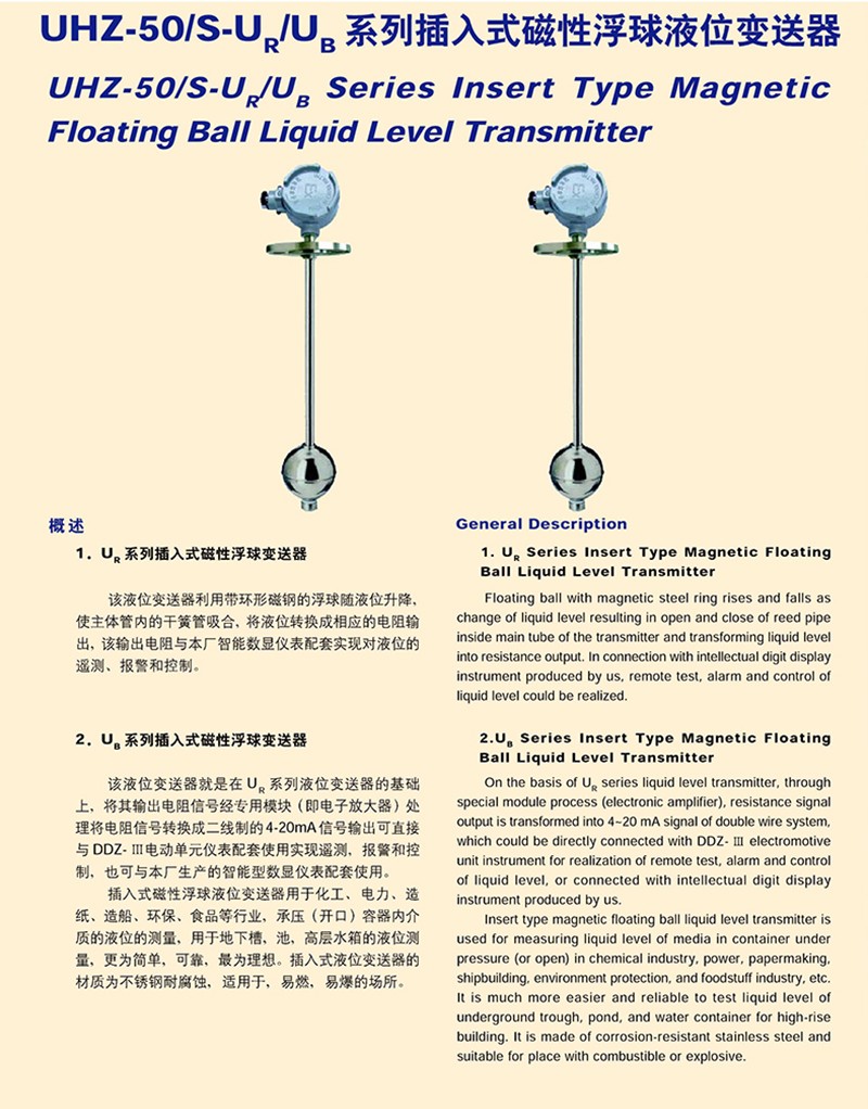 UHZ-50/s-UR/UB系列插入式磁性浮球液位變送器
