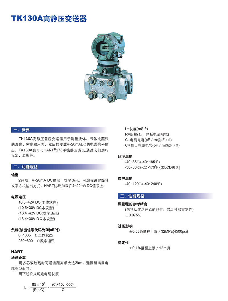 130A高靜壓變送器