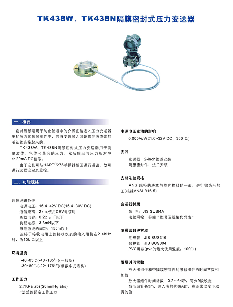 438W、438N隔膜密封式壓力變送器